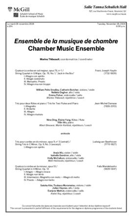 Featuring: Chamber Music Ensemble ; Marina Thibeault, coordinator.