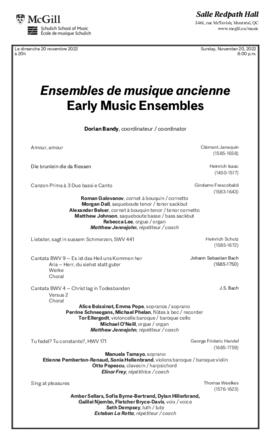Featuring: McGill Early Music Ensembles ; Dorian Bandy, coordinator.