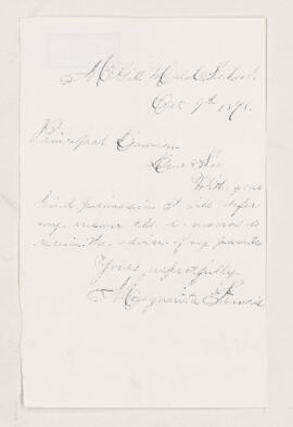 Letter from Marguerita Francis to John William Dawson.