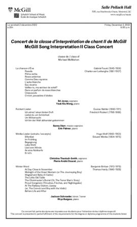 McGill Song Interpretation II Class Concert, 2 December 2022